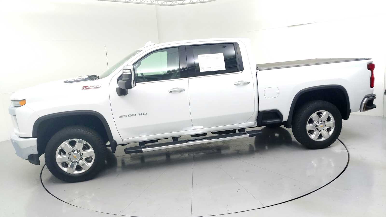 ENGINE, DURAMAX 6.6L TURBO-DIESEL V8 B20-Diesel compatible, (445 hp [332 kW] @ 2800 rpm, 910 lb-ft of torque [1220 Nm] @ 1600 rpm), LTZ CONVENIENCE PACKAGE includes (A50) bucket seats with (D07) center console, (KQV) heated and ventilated front seats, (A48) rear sliding power window, (UG1) Universal Home Remote, (QT6) power up/down tailgate, (UF2) bed LED cargo area lighting and (KA6) rear heated seats (Vehicles built prior to 11-15-2021 and on or after 2-21-2022 through 3-13-2022 and after 4-24-2022 include ventilated driver and front passenger seats. Certain vehicles built between 11-15-2021 and 2-20-2022 and on or after 3-14-2022 through 4-24-2022 will be forced to include (00V) Not Equipped with Heated or Ventilated Front Seats, which removes ventilated front seats. Vehicles equipped with (00V) Not Equipped with Heated or Ventilated Front Seats will be eligible for later dealer retrofit to enable functionality, see, LTZ CONVENIENCE PACKAGE II includes (IOT) Chevrolet Infotainment System with Navigation and 8 diagonal color touch-screen, (UQA) Bose Premium Audio System, (UVN) Bed View Camera, (UVS) HD Surround Vision with Two Trailer View Camera Provisions and (K4C) Wireless Charging, WHEELS, 20 (50.8 CM) POLISHED ALUMINUM 6-spoke, SUNROOF, POWER ON CREW CAB MODELS, SAFETY PACKAGE includes (UD5) Front and Rear Park Assist, (UKC) Lane Change Alert with Side Blind Zone Alert and (UFG) Rear Cross Traffic Alert Vehicles built prior to 12-20-2021 include Front and Rear Park Assist. Certain vehicles built on or after 12-20-2021, will be forced to include (00Z) Not Equipped with Front and Rear Park Assist, which removes Front and Rear Park Assist. See dealer for details or the window label for the features on a specific vehicle.), LPO, ASSIST STEPS, CHROMED TUBULAR, 6 RECTANGULAR (dealer-installed), SAFETY PACKAGE II includes (UEU) Forward Collision Alert, (UFL) Lane Departure Warning, (UHY) Automatic Emergency Braking, (TQ5) IntelliBeam headlamps, (UE4) Following Distance Indicator and (HS1) Safety Alert Seat, AUDIO SYSTEM, CHEVROLET INFOTAINMENT 3 PREMIUM SYSTEM WITH CONNECTED NAVIGATION 8 diagonal HD color touchscreen, AM/FM stereo, Bluetooth audio streaming for 2 active devices, wireless Apple CarPlay and Android Auto capable, enhanced voice recognition, additional memory for in-vehicle apps, cloud connected personalization for select infotainment and vehicle settings. Subscription required for enhanced and connected services after trial period. Includes (PZ8) High Guidance with Hitch View.), TRANSMISSION, ALLISON 10-SPEED AUTOMATIC.