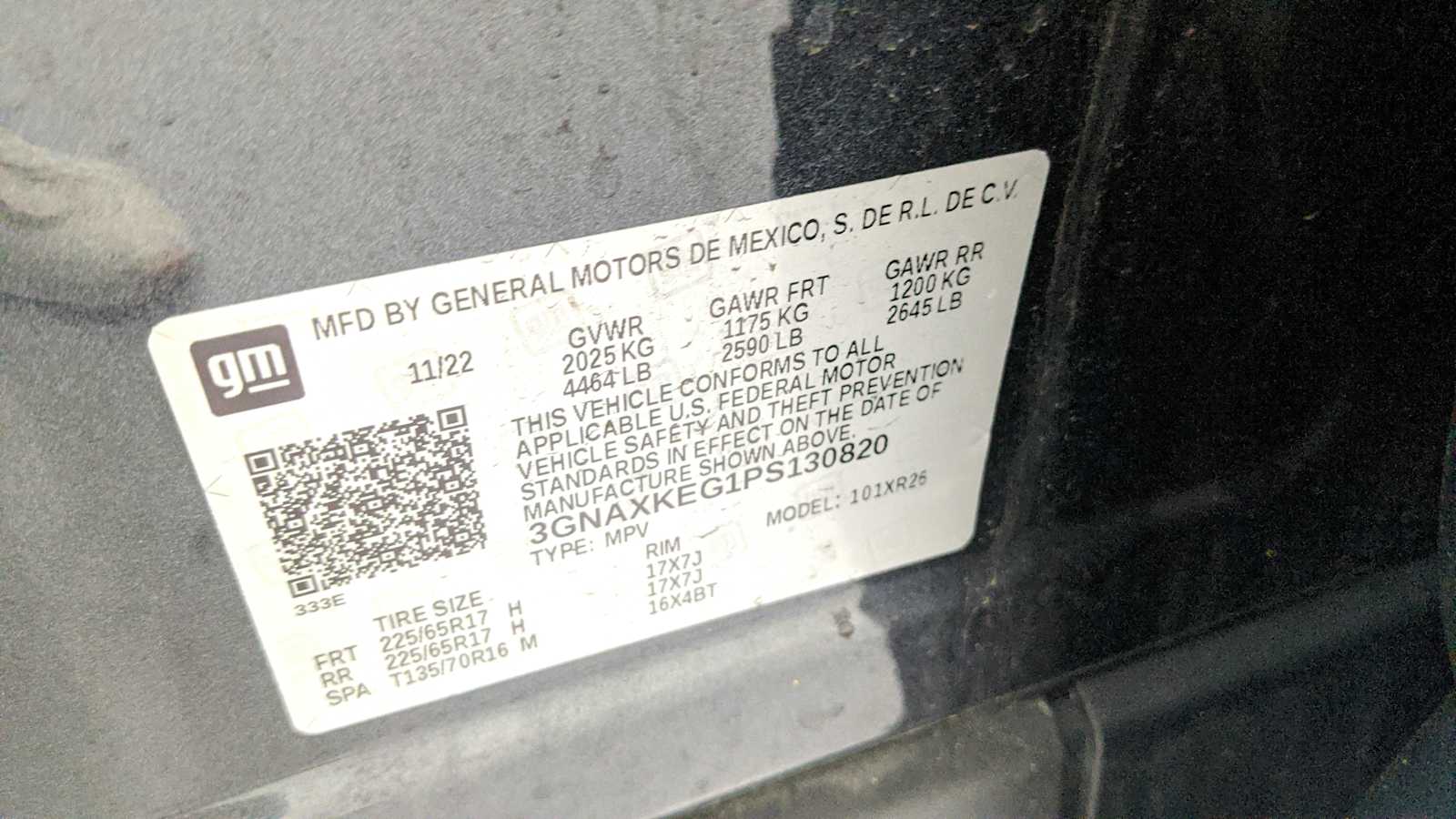 - VIN : 3GNAXKEG1PS130820
