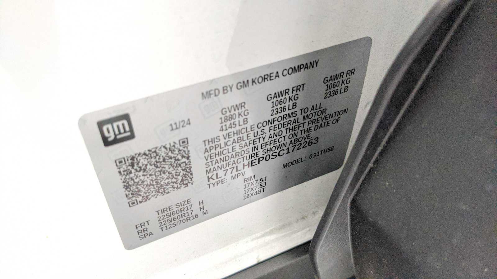 - VIN : KL77LHEP0SC172263