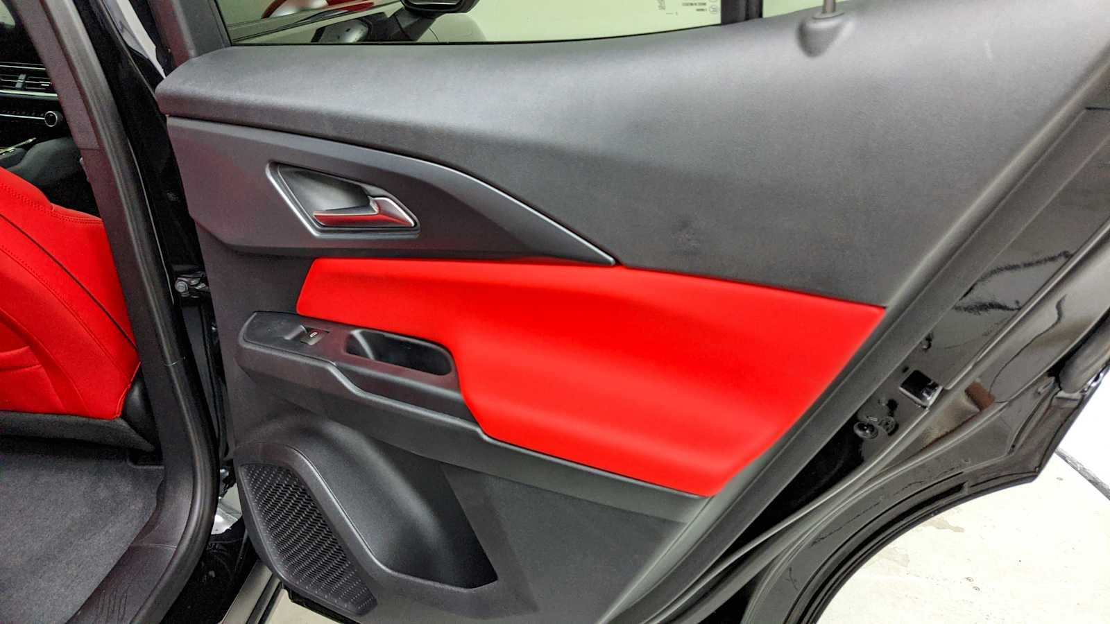 NAV, Sunroof, Heated Seats, Onboard Communications System, iPod/MP3 Input, Power Liftgate, TRANSMISSION, NONE (ELECTRIC DRIVE UN... SUNROOF, POWER, DUAL PANEL, PANORAMIC... Satellite Radio. Black exterior and Adrenaline Red interior.