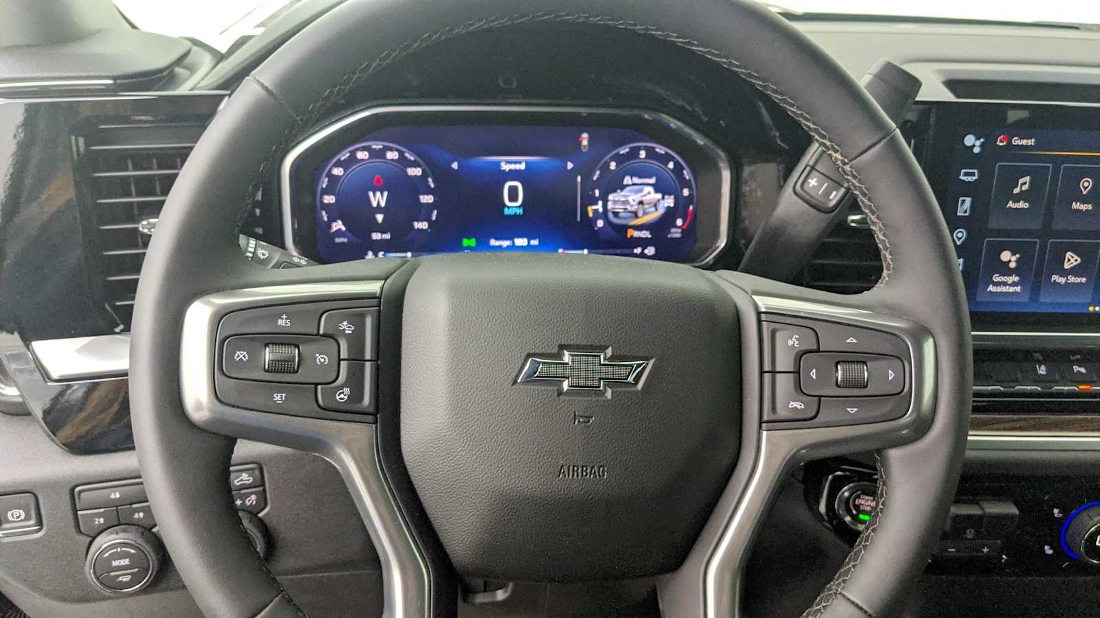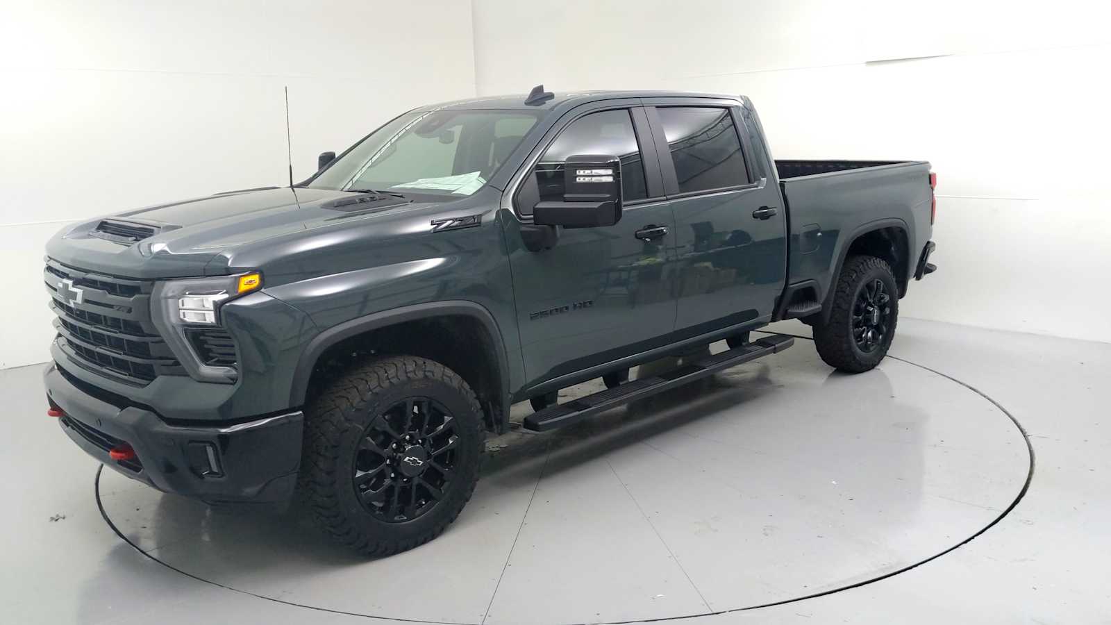 TRAIL BOSS PACKAGE Includes black grille bar with Chevy Black Bow Tie, Black grille inserts, (SRI) 20 High gloss Black painted wheels, (VB5) High Gloss Black painted front bumper, (VT5) High Gloss Black painted rear bumper, (UGA) Red Tow Hooks, (QFG) LT275/65R20 BF Goodrich off-road tires, Black skid plate, Black badging, Black bowtie on horn pad, (DP6) High Gloss Black mirror caps, Black hood vent surround, High Gloss Black door handles and (CGN) Chevytec spray-on bedliner. Includes high-intensity LED headlamps and (DWI) trailer mirrors. SAFETY PACKAGE includes (UD5) Front and Rear Park Assist, (UKV) Trailer Side Blind Zone Alert, (UFG) Rear Cross Traffic Alert, (UV2) HD Surround Vision, (UVN) Bed View Camera and (TRG) Trailer Camera Provisions (Includes (UET) Trailering App. CONVENIENCE PACKAGE includes (UF2) Cargo bed LED lighting, (CJ2) dual-zone automatic climate control, (A2X) 10-way power driver seat including power lumbar, (N37) manual tilt/telescoping steering column, (T3U) LED fog lamps, SEATS, FRONT BUCKET with center console, for Crew Cab and Double Cab models, CONVENIENCE PACKAGE II includes (PZ8) Hitch Guidance with Hitch View, (UET) Trailering App, (A48) rear sliding power window and (UG1) Universal Home Remote. Includes (R7O) Cloth Rear Seat with Storage Package. REMOTE START PACKAGE includes (BTV) Remote Start, (UTJ) Theft Deterrent System and (C49) rear-window defogger, Z71 OFF-ROAD PACKAGE includes (Z71) Off-Road suspension with off-road tuned twin tube Rancho shocks, (JHD) Hill Descent Control and (NZZ) skid plates (transfer case and oil pan) (Includes (QXT) LT265/70R17 all-terrain, blackwall tires and molded in color Black grille. MIRRORS, OUTSIDE POWER-ADJUSTABLE VERTICAL TRAILERING WITH HEATED AND AUTO-DIMMING UPPER GLASS lower convex mirrors, turn signal indicators, puddle lamps, (U12) perimeter lighting, auxiliary lighting, power folding/manual extending (extends 3.31 [84.25mm]) Includes (DD8) auto-dimming rearview mirror which can be upgraded to (DRZ) Rear Camera Mirror.), TAILGATE, MULTI-FLEX with six functional load/access features, NOTE: Auto release can be disabled if ball hitch is installed. See Owners manual for details, HEAT PACKAGE includes (KA1) Heated driver and passenger seats and (KI3) Heated steering wheel, AUDIO SYSTEM, CHEVROLET INFOTAINMENT 3 PREMIUM SYSTEM with Google built-in compatibility (select service plan required, terms and limitations apply) including navigation capability, 13.4 diagonal HD color touchscreen, includes multi-touch display, AM/FM stereo, Bluetooth streaming audio for music and most phones; featuring Wireless Apple CarPlay and Wireless Android Auto capability for compatible phones, advanced voice recognition, in-vehicle apps, personalized profiles for infotainment and vehicle settings (STD), ENGINE, 6.6L V8 with Direct Injection and Variable Valve Timing, gasoline, (401 hp [299 kW] @ 5200 rpm, 464 lb-ft of torque [629 N-m] @ 4000 rpm) (STD), TRANSMISSION, 10-SPEED AUTOMATIC (STD), SEAT, UP-LEVEL REAR WITH STORAGE PACKAGE 60/40 Split rear seat with center armrest, right, and left seat back storage, and under seat jack storage (Crew Cabs Only) Rear seat leather appointed.