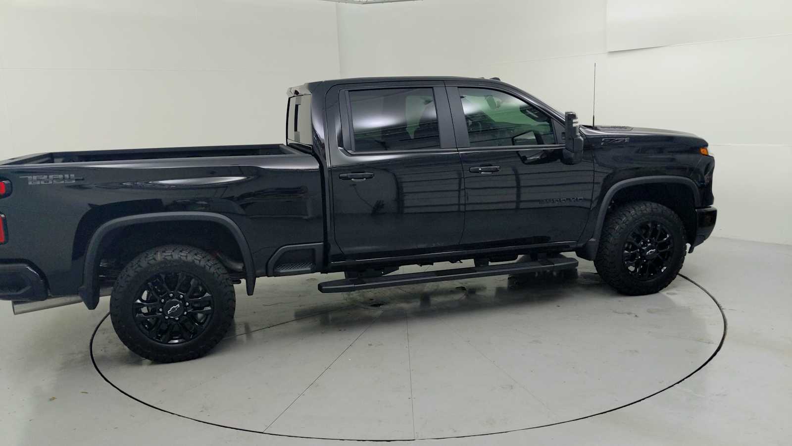 ENGINE, DURAMAX 6.6L TURBO-DIESEL V8 B20-Diesel compatible, (470 hp [350.5 kW] @ 2800 rpm, 975 lb-ft of torque [1322 Nm] @ 1600 rpm), TRAIL BOSS PACKAGE Includes black grille bar with Chevy Black Bow Tie, Black grille inserts, (SRI) 20 High gloss Black painted wheels, (VB5) High Gloss Black painted front bumper, (VT5) High Gloss Black painted rear bumper, (UGA) Red Tow Hooks, (QFG) LT275/65R20 BF Goodrich off-road tires, Black skid plate, Black badging, Black bowtie on horn pad, (DP6) High Gloss Black mirror caps, Black hood vent surround, High Gloss Black door handles and (CGN) Chevytec spray-on bedliner. Includes high-intensity LED headlamps and (DWI) trailer mirrors. SAFETY PACKAGE includes (UD5) Front and Rear Park Assist, (UKV) Trailer Side Blind Zone Alert, (UFG) Rear Cross Traffic Alert, (UV2) HD Surround Vision, (UVN) Bed View Camera and (TRG) Trailer Camera Provisions (Includes (UET) Trailering App. CONVENIENCE PACKAGE includes (UF2) Cargo bed LED lighting, (CJ2) dual-zone automatic climate control, (A2X) 10-way power driver seat including power lumbar, (N37) manual tilt/telescoping steering column, (T3U) LED fog lamps, SEATS, FRONT BUCKET with center console, for Crew Cab and Double Cab models, CONVENIENCE PACKAGE II includes (PZ8) Hitch Guidance with Hitch View, (UET) Trailering App, (A48) rear sliding power window and (UG1) Universal Home Remote. Includes (R7O) Cloth Rear Seat with Storage Package. REAR CAMERA MIRROR, INSIDE REARVIEW AUTO-DIMMING with full camera display, REMOTE START PACKAGE includes (BTV) Remote Start, (UTJ) Theft Deterrent System and (C49) rear-window defogger, Z71 OFF-ROAD PACKAGE includes (Z71) Off-Road suspension with off-road tuned twin tube Rancho shocks, (JHD) Hill Descent Control and (NZZ) skid plates (transfer case and oil pan) (Includes (QXT) LT265/70R17 all-terrain, blackwall tires and molded in color Black grille. MIRRORS, OUTSIDE POWER-ADJUSTABLE VERTICAL TRAILERING WITH HEATED AND AUTO-DIMMING UPPER GLASS lower convex mirrors, turn signal indicators, puddle lamps, (U12) perimeter lighting, auxiliary lighting, power folding/manual extending (extends 3.31 [84.25mm]) Includes (DD8) auto-dimming rearview mirror which can be upgraded to (DRZ) Rear Camera Mirror.), HEAT PACKAGE includes (KA1) Heated driver and passenger seats and (KI3) Heated steering wheel, LPO, ALL-WEATHER FLOOR LINERS 1st and 2nd rows, (includes Z71 logo on front mats), AUDIO SYSTEM, CHEVROLET INFOTAINMENT 3 PREMIUM SYSTEM with Google built-in compatibility (select service plan required, terms and limitations apply) including navigation capability, 13.4 diagonal HD color touchscreen, includes multi-touch display, AM/FM stereo, Bluetooth streaming audio for music and most phones; featuring Wireless Apple CarPlay and Wireless Android Auto capability for compatible phones, advanced voice recognition, in-vehicle apps, personalized profiles for infotainment and vehicle settings (STD), TRANSMISSION, 10-SPEED AUTOMATIC, SEAT, UP-LEVEL REAR WITH STORAGE PACKAGE 60/40 Split rear seat with center armrest, right, and left seat back storage, and under seat jack storage (Crew Cabs Only) Rear seat leather appointed.